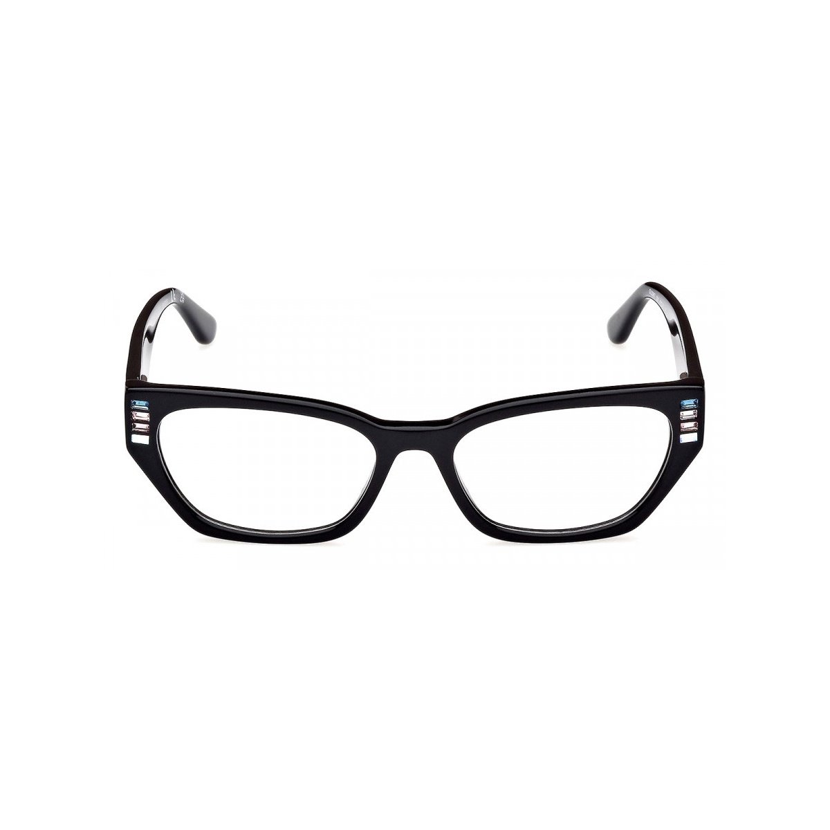 Este armazón Guess combina elegancia y diseño en una pieza moderna y versátil. Su estructura en acetato negro ofrece durabilidad y comodidad, mientras que los detalles decorativos en los laterales aportan un toque distintivo y femenino.